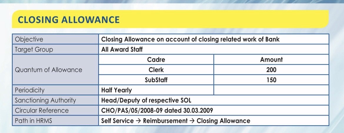 Closing allowance will be paid to award staff working in branches. In case of award staff working in Administrative offices, such payment is to be kept restricted to those who…
